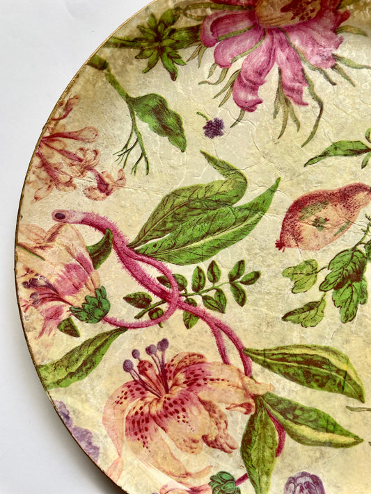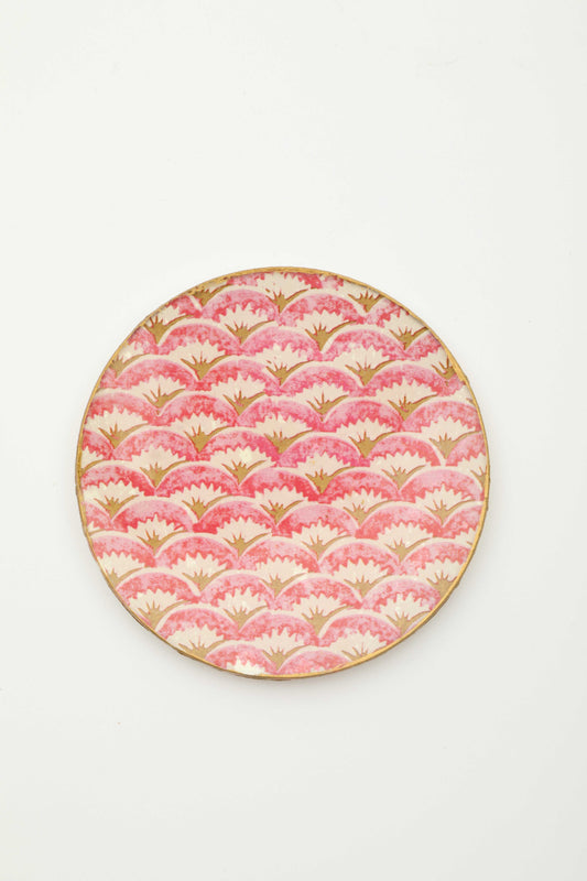 piatto tondo in vetro "rose et or"