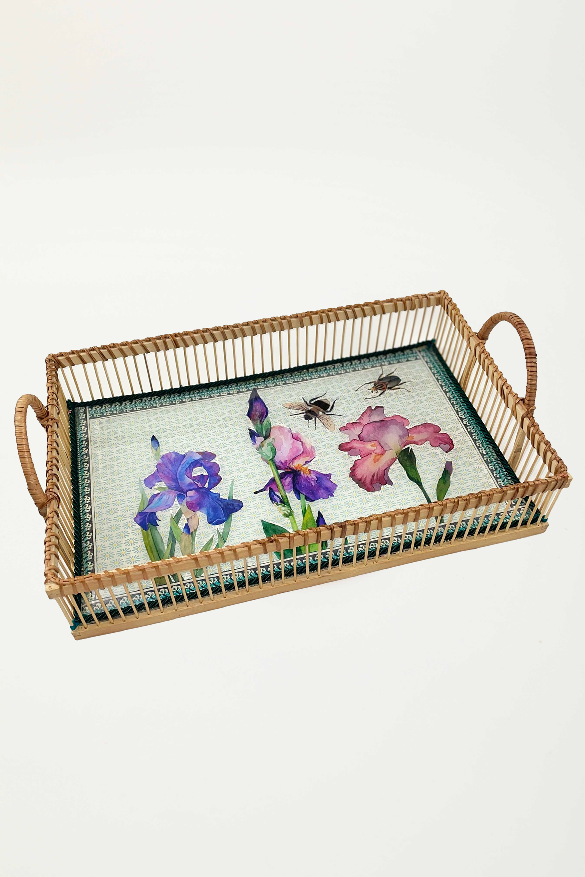 vassoio decorato a mano con pura carta di gelso e inserti naturali, con stampe animali e floreali. Scopri la nostra nuova collezione di vassoi per la primavera.